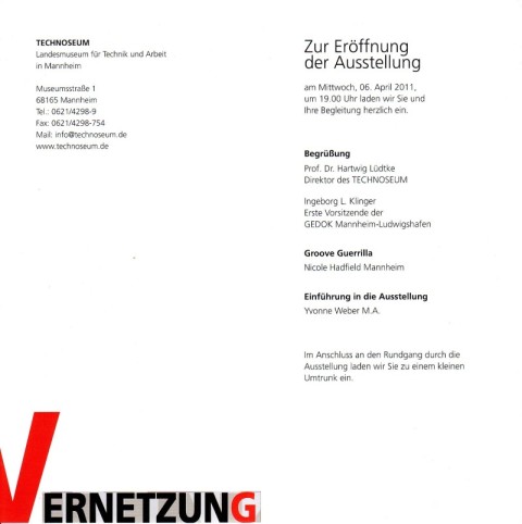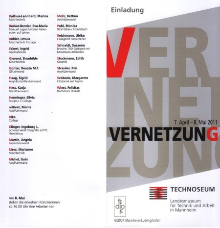 Zusammen mit 22 weiteren Künstlerinnen der GEDOK (Gemeinschaft der Künstlerinnen und Kunstförderer e.V.) darf ich Sie ganz herzlich zur Ausstellung VERNETZUNG einladen:
