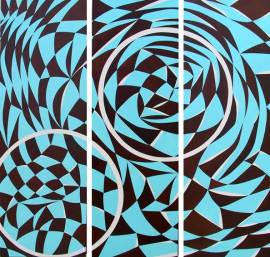 Die fließend anmutenden, immer wiederkehrenden Formelemente und die Verwendung von markantem Kolorit, die harmonisch miteinander verbunden werden, versetzt den Betrachter in ein rhythmisch bewegtes