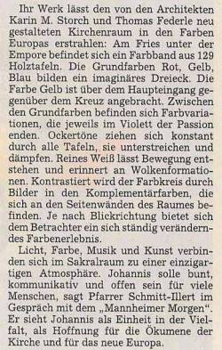 Die Farbe GELB wird über dem Haupteingang, gegenüber dem Kreuz, angebracht als das lichthaft Sonnige im Angesicht des Christus.