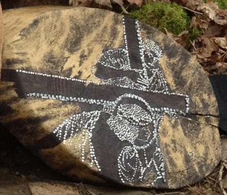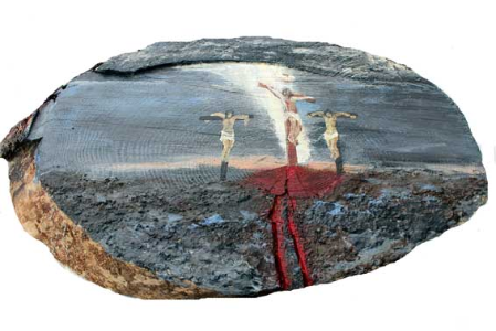 Weiterhin habe ich die Station "Simon von Cyrene hilft Jesus das Kreuz tragen" und "Christus stibt am Kreuz" in unterschiedlichen Techniken dargestellt.