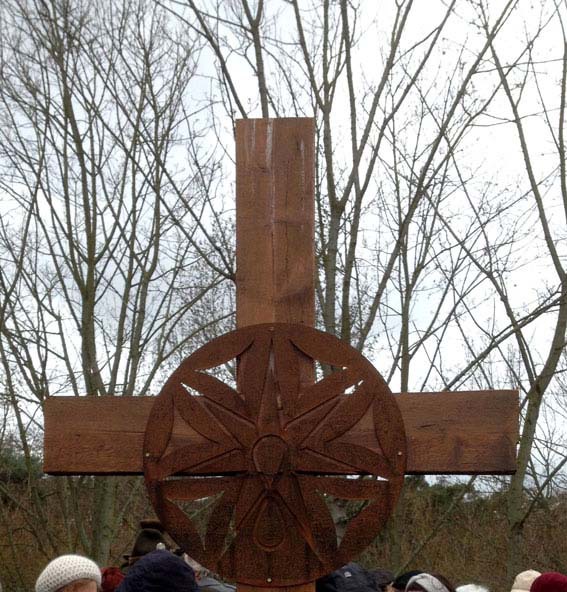 Die Sonne am Kreuz, sowie die Sonne zu Beginn des Weges wurden von mir entworfen und von der Firma Ortner in Cortenblech umgesetzt. Die Sonnendarstellung ist geprägt von einer