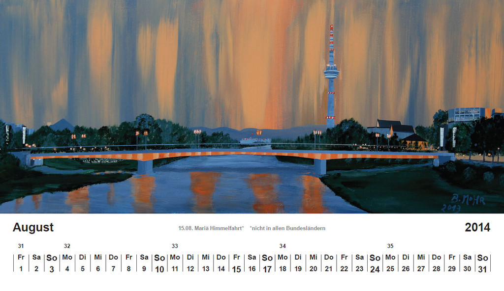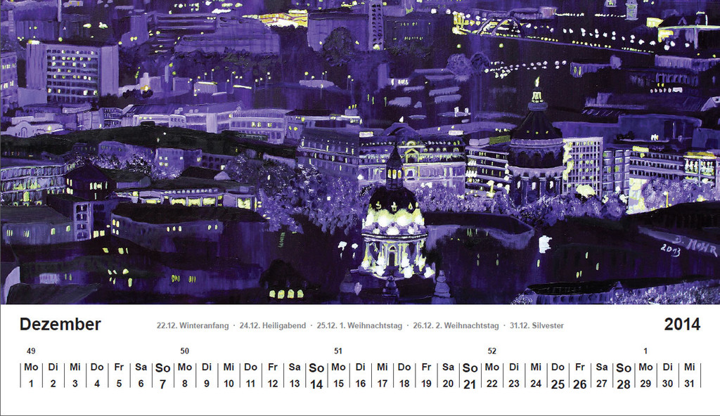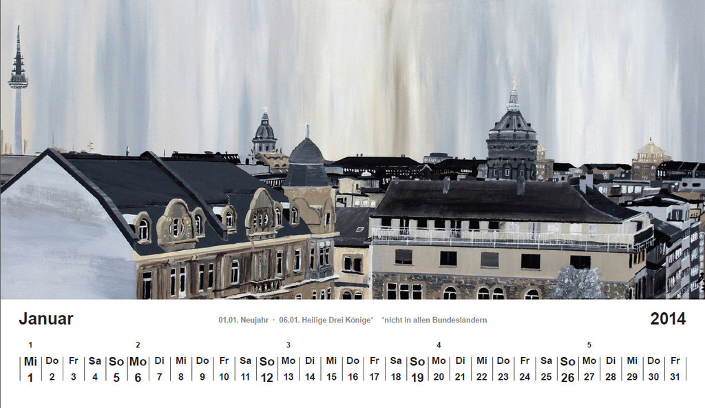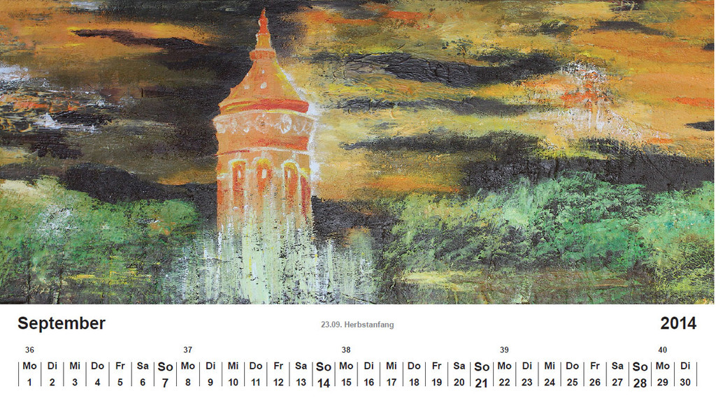 Ich freue mich, Ihnen meinen neuen Kunstkalender für das Jahr 2014 vorstellen zu können. Es ist nun schon der 7. Kalender und ich hoffe, dass diese Ausführung Ihren Zuspruch findet.