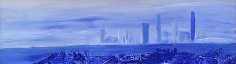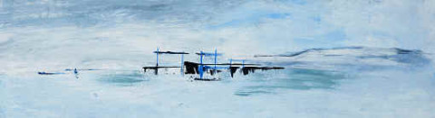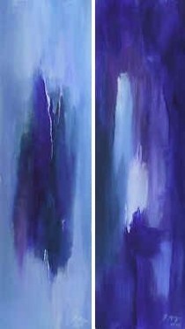 Bei den Werken der nordbadischen Malerin Bettina Mohr verwundert das Format. Wie schmale Streifen gestaltet sie ihre Kompositionen, die bisweilen an Landschaftsmalerei erinnern, bisweilen an abstrakte Bilder. Die Grenzen sind hier fließend: Visionen, die aus dem Innern kommen und somit unwirklich und surreal erscheinen, aber uns dennoch vertraut sind. Fantasie und Wirklichkeit verschmelzen hier miteinander. In Bettina Mohrs aktuellen Werken dominiert die Farbe Blau. Blau hat vielfältige Erscheinungsformen und löst ganz unterschiedliche Reaktionen beim Betrachter aus. Eindeutig kalt ist die Wirkung jedoch in den seltensten Fällen. Blau ist für die Malerin eine transzendentale Farbe. Nicht umsonst habe Blau deshalb in der christlichen Ikonographie eine herausragende Bedeutung. Blau führt in die Tiefe, regt die Fantasie an und lädt zum Träumen ein. Mit Blau lassen sich Szenarien gestalten, die, je nach Malweise in den